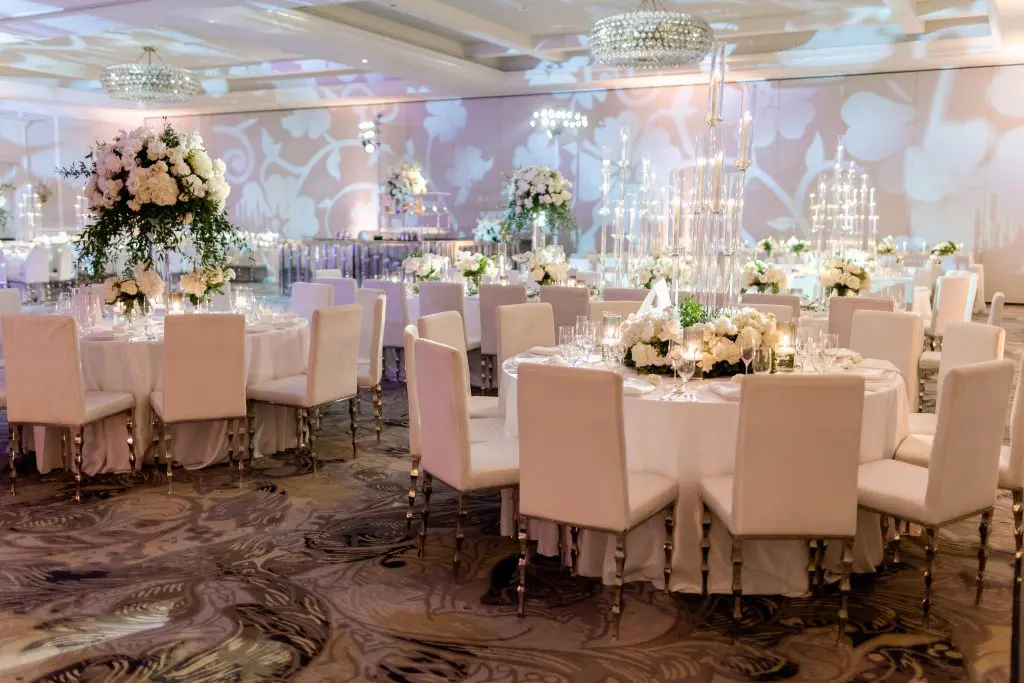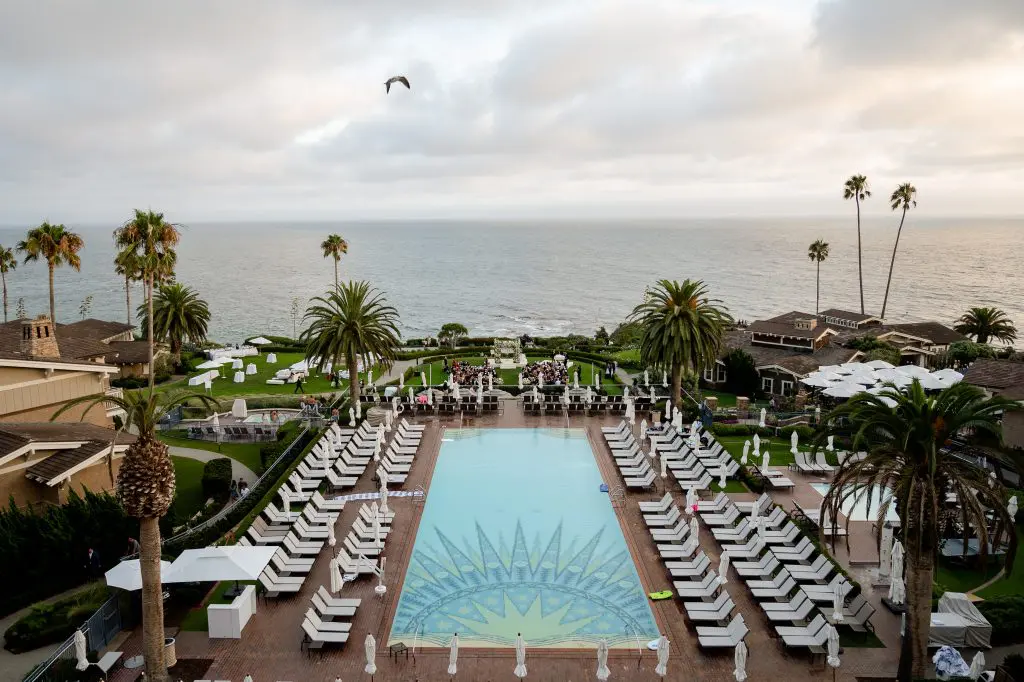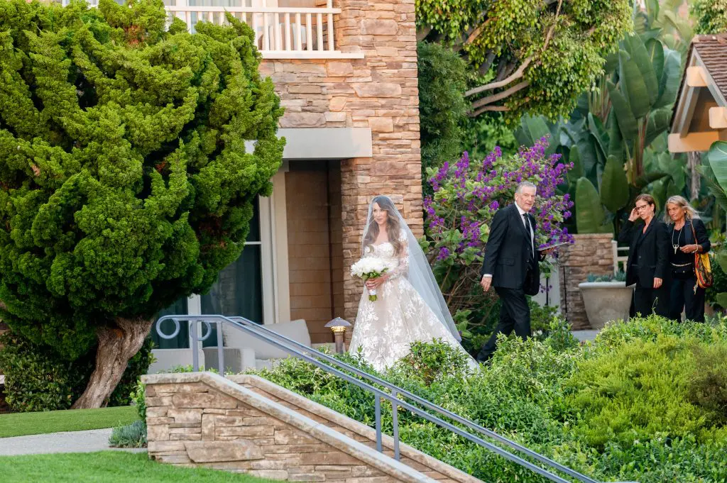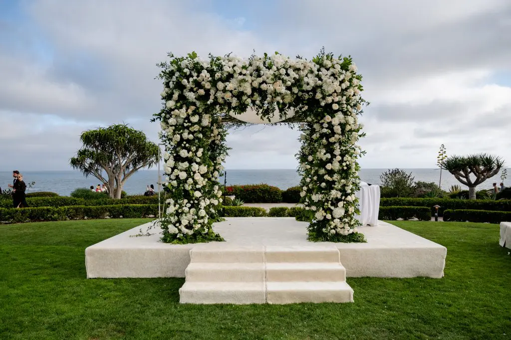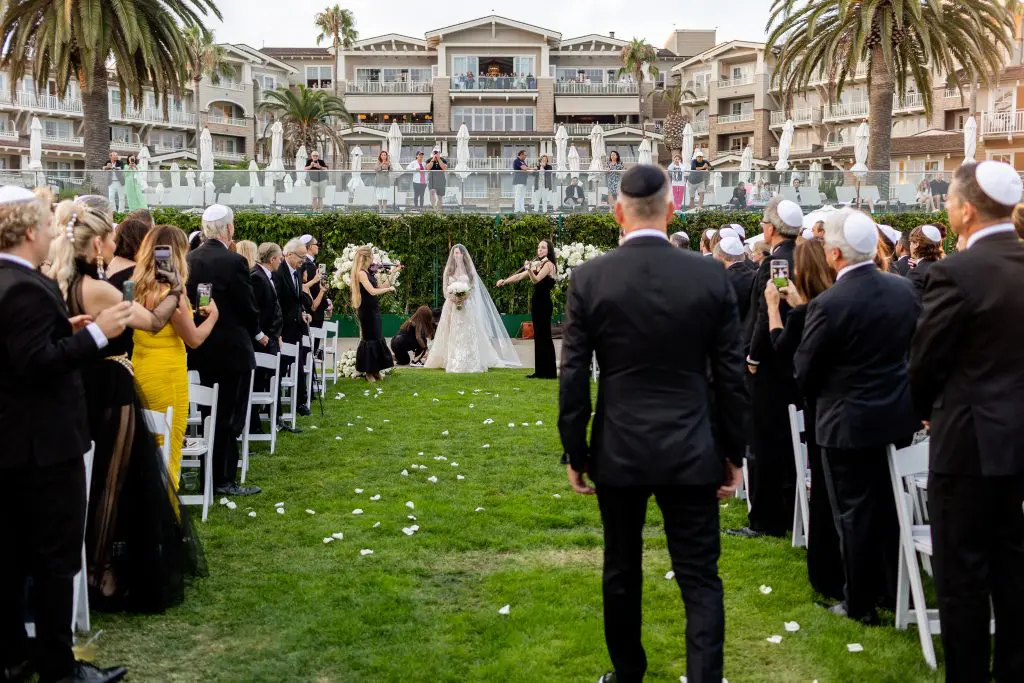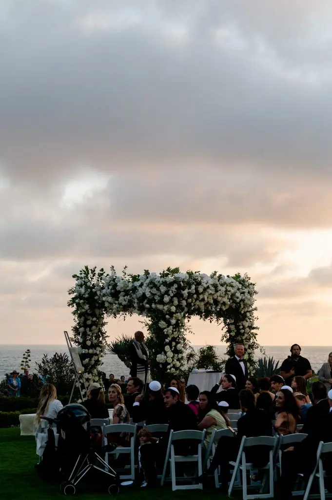 Dinah and Boaz married at the Montage in Laguna Beach. This wedding was different from what we usually do in the way that the bride had converted to Judaism. Since this was an American Jewish wedding, the bride and groom didn’t see each other until the bride walked down the aisle. Dinah had a poster that she brought to the ceremony that had the meanings of the traditions that are done at the ceremony. There were five different vibes to this wedding; cocktail reception 1, ceremony, cocktail reception 2, reception, and after party. The ceremony took place over the lush oceanfront lawn, where we built a white carpeted stage with a few steps to walk up easily. The bride and groom chose to have the second cocktail reception so that they could be a part of it with their friends and family because they weren’t at the first one because they didn’t see each other until the ceremony. Dinah and Boaz were escorted by drummers who blew out of their shofars to make their grand entrance to the second cocktail reception, down a brick staircase. After the second cocktail reception, the guests were escorted to the main ballroom for the reception. Dinah was excited to be lifted up on the chair for the horah. There were fun games done on the dancefloor like limbo and lots of dancing. At 11pm everyone was escorted to a separate room for the after party. The afterparty is where the newlyweds cut their cake, dessert was served, and a lot more dancing.